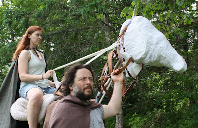 It’s our second ten out of twelve day—companies are allowed to call the actors for four twelve hour days in a rehearsal period, working ten hours with two hours of lunch, supper and breaks.  The ten out of twelves are usually used for tech days—adding costumes, lighting, sound, special effects—and often there’s little real rehearsal for the actors.  But with outdoor theatre with no electrical elements… there’s no tech days.  Which translates into more genuine rehearsal time in the last days before opening.
